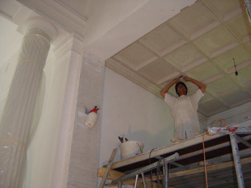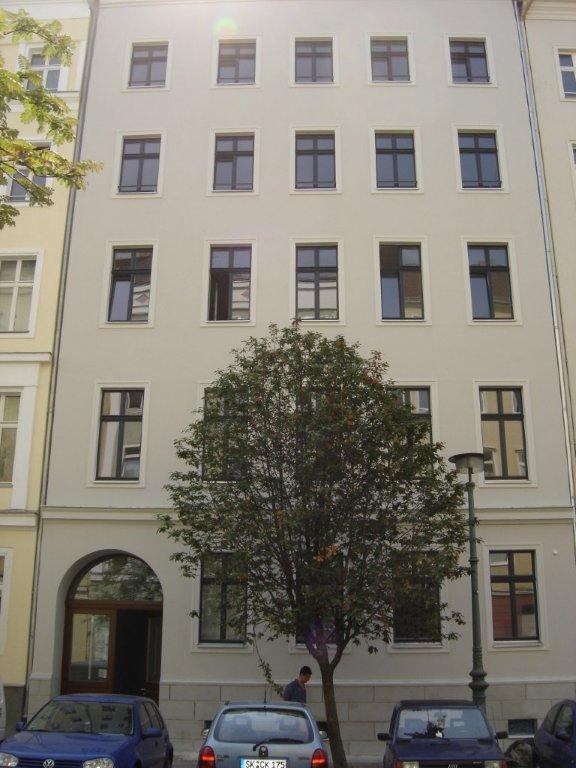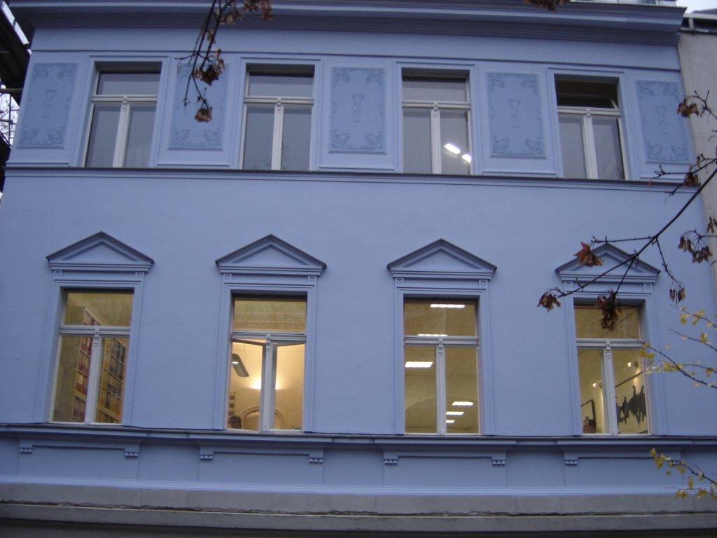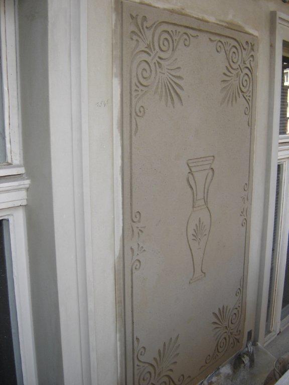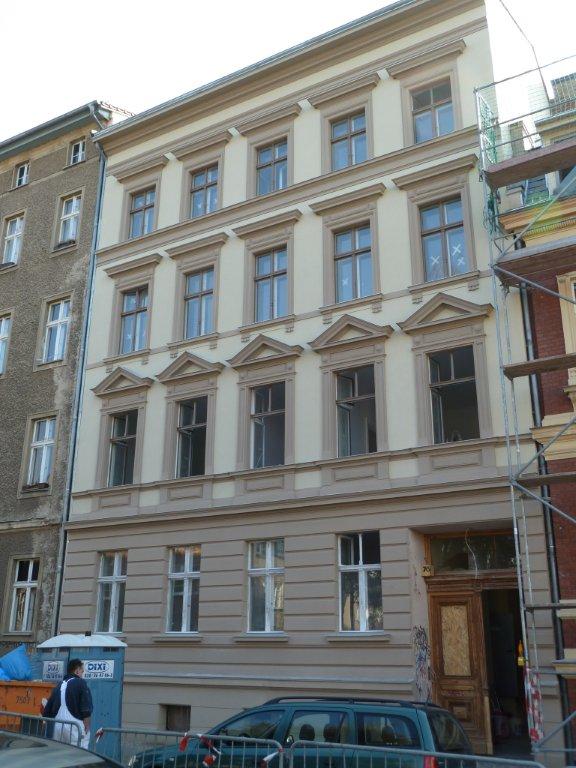 An dieser Fassade wurden von mir nach einem Wasserschaden die Balkone saniert. Bei den Arbeiten wurden die Balkon- Abschlussgesimse und ein Postament durch Stuckform- Arbeiten teilergänzt. |