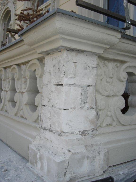 Bei diesem Bauvorhaben waren die Balkonkonsolen so stark beschädigt das sie nach dem alten Vorbild neu rekonstruiert werden mussten. |
