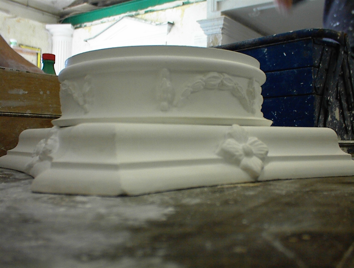 Die Herstellung der Stuckformen kann je nach Witterung und Beschaffenheit des Modells entweder vor Ort oder nach Abnahme des Modells vom Bauwerk in der Werkstatt ausgeführt werden.